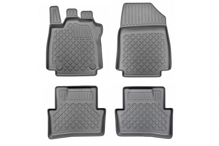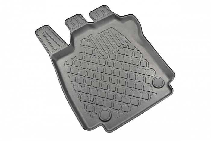 Materialul din care sunt confectionate covorasele tip tavita este un "reinforced thermoplastic elastomer", un cauciuc artificial durificat, polimer care combina avantajele cauciucului cu cele ale plasticului de inalta rezistenta, este materialul din care sunt produse tavitele pentru portbagaj Premium Cool Liner™, dar ceva mai gros.