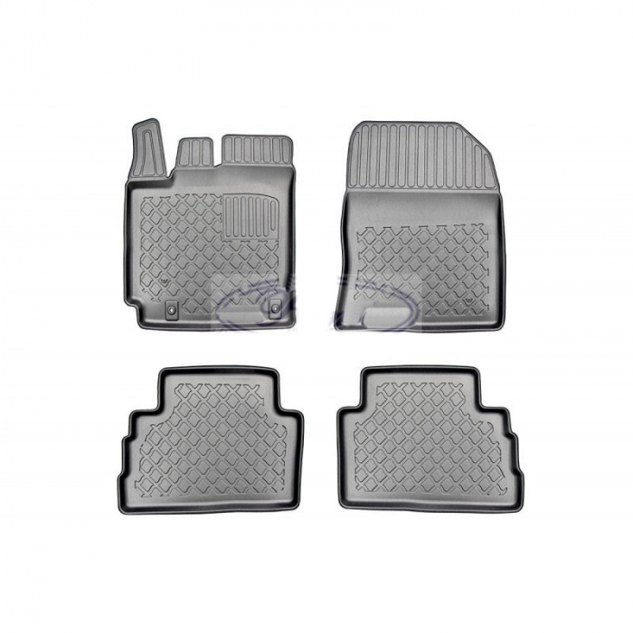Materialul din care sunt confectionate covorasele tip tavita este un "reinforced thermoplastic elastomer", un cauciuc artificial durificat, polimer care combina avantajele cauciucului cu cele ale plasticului de inalta rezistenta, este materialul din care sunt produse tavitele pentru portbagaj Premium Cool Liner™, dar ceva mai gros.