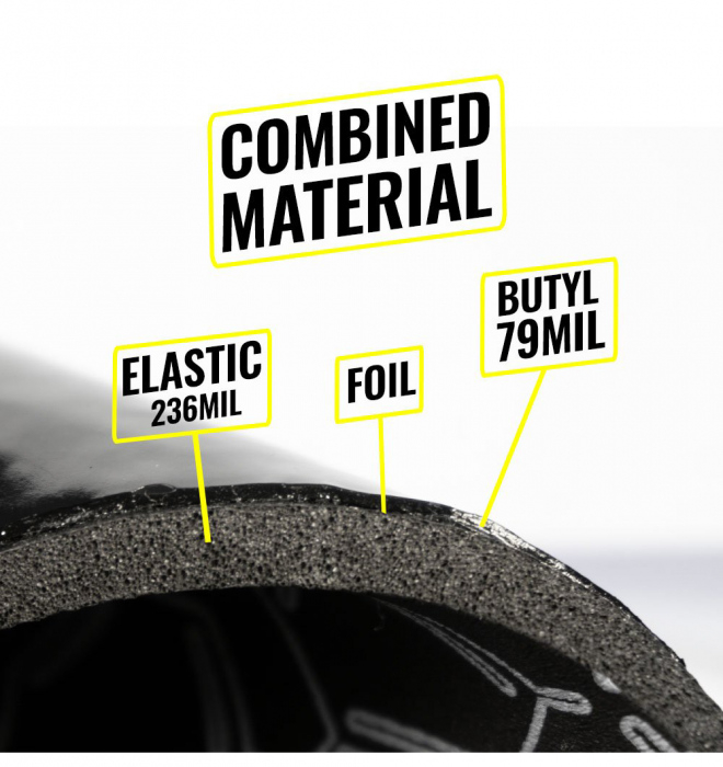 Sandwich-ul este format din material care absoarbe vibratiile (CTK Premium) si material care absoarbe zgomotul (CTK Elastic). Ar trebui sa fie utilizat pe zone plane ale podelelor si usilor masinii. Este rezistent la umiditate. Produsul a fost creat pentru a reduce timpul de instalare.