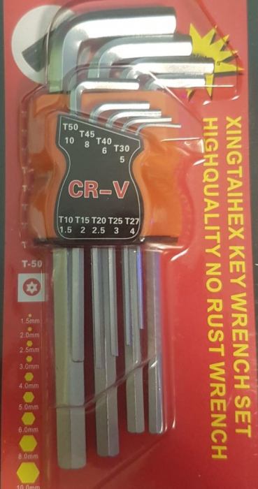 T10-1.5 mm ,T15- 2.0 mm, T20-2.5 mm, T25-3.0 mm, T27-4.0 mm, T30-5.0 mm, T40-6.0 mm, T45-8.0mm, T50-10 mm