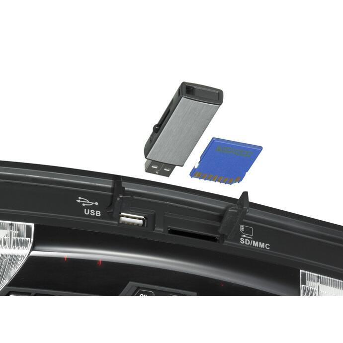 - Intrările USB şi SD/MMC frontale acceptă redarea fişierelor în format MPEG(1/2/4) şi MP3/WMA.