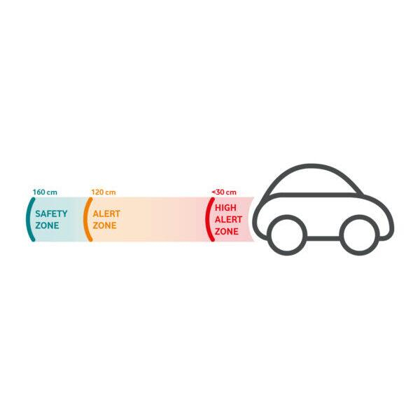 Sistem de asistență la parcare pentru spate cu 4 senzori ultrasonici și semnale acustice progresive, care determină distanța dintre vehicul și obstacol.